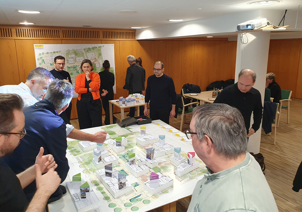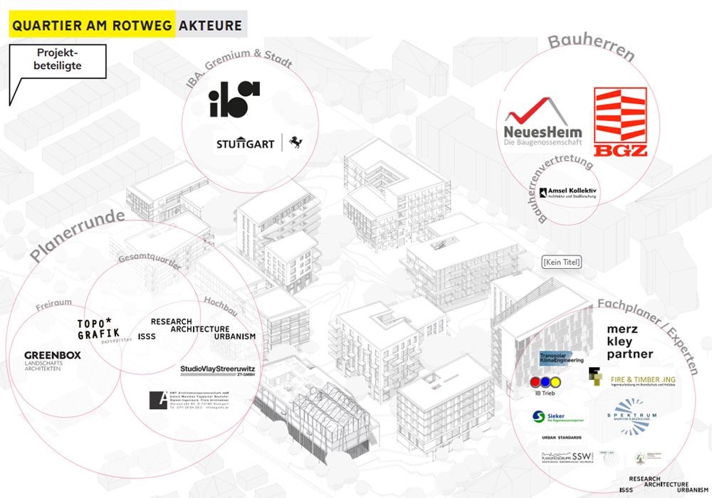 Seit der Entscheidung des städtebaulichen Wettbewerbs im April 2021 sind die drei beauftragten Planungsbüros ISSS research | architecture | urbanism aus Berlin, EMT Architekten aus Stuttgart und StudioVlayStreeruwitz aus Wien sowie die beiden Landschaftsarchitekturbüros TOPO*grafik aus Marseille und Greenbox aus Stuttgart dabei, die städte- und hochbaulichen Planungen in einem kooperativen Dialogprozess gemeinsam mit den Genossenschaften weiterzuentwickeln. Die Planer*innen traten dazu im Rahmen des Beteiligungsprozesses „Reallabor Wohnen – resilient und generationengerecht für Alle in Stuttgart-Rot“ auch mit den vielfältigen Akteuren vor Ort in den Dialog.